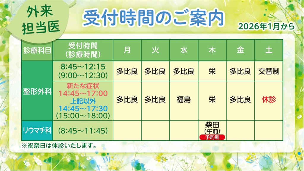 診療担当医表変更のお知らせ